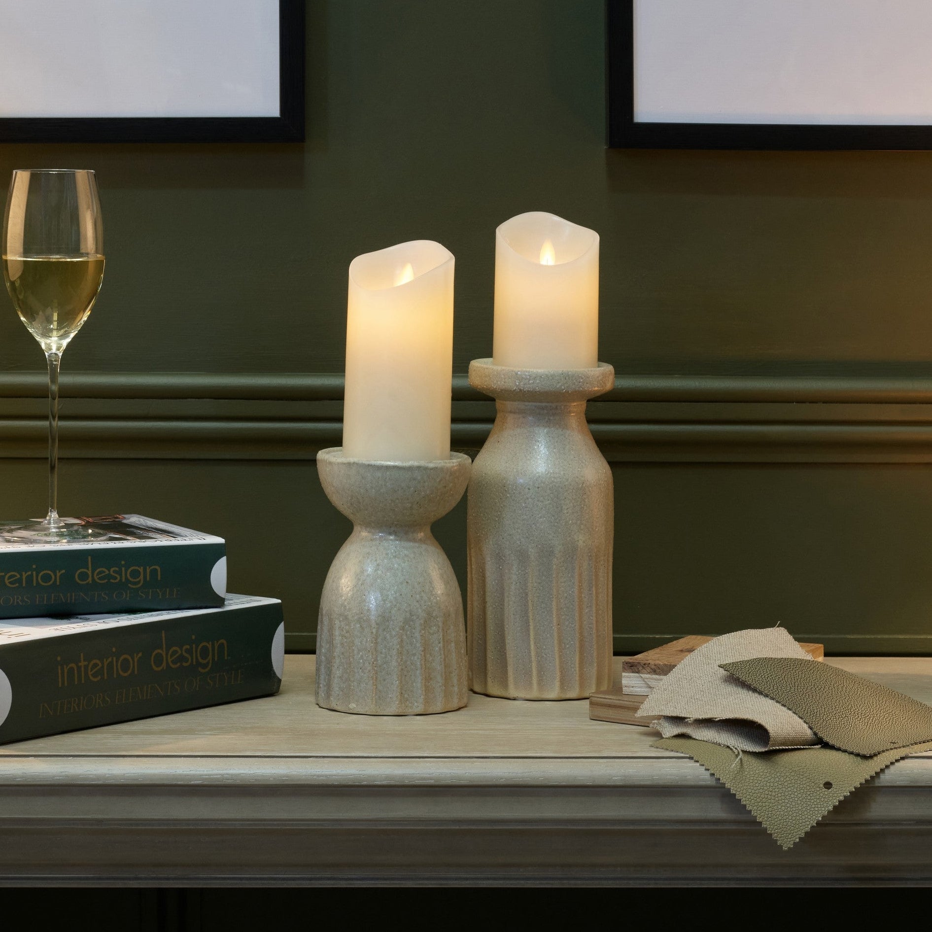 The Sophie Candle Holder Small features a gently rounded form with a beautifully textured surface that resembles hand carved ceramic work. Its soft neutral glaze gives it a calming presence while the vertical ridging adds structure and visual interest. This piece feels organic yet refined making it a versatile addition to many interior styles.