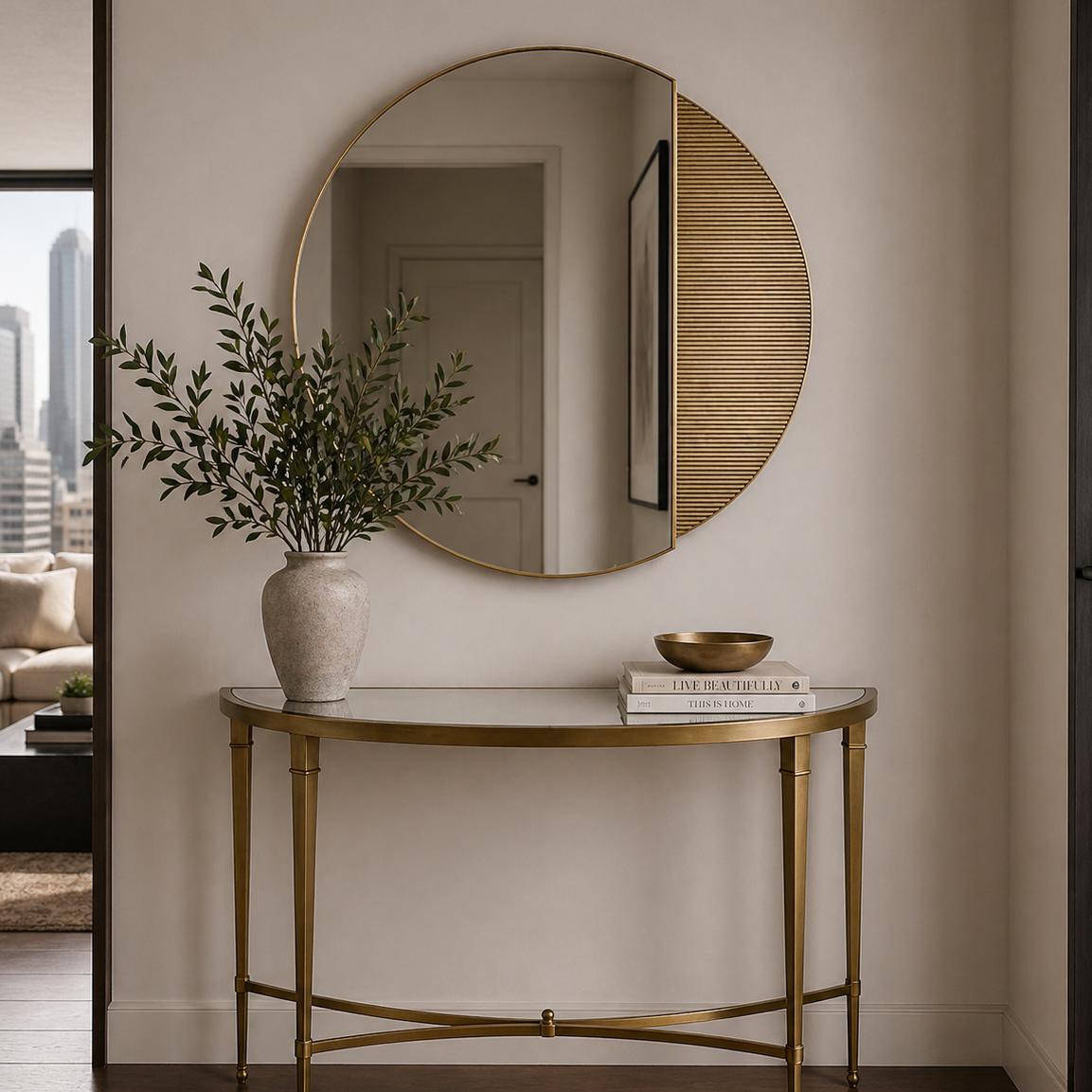 The Franklin Mirror is a striking statement piece designed to elevate any space. Its distinctive design adds character and visual interest while enhancing light and creating a refined focal point.