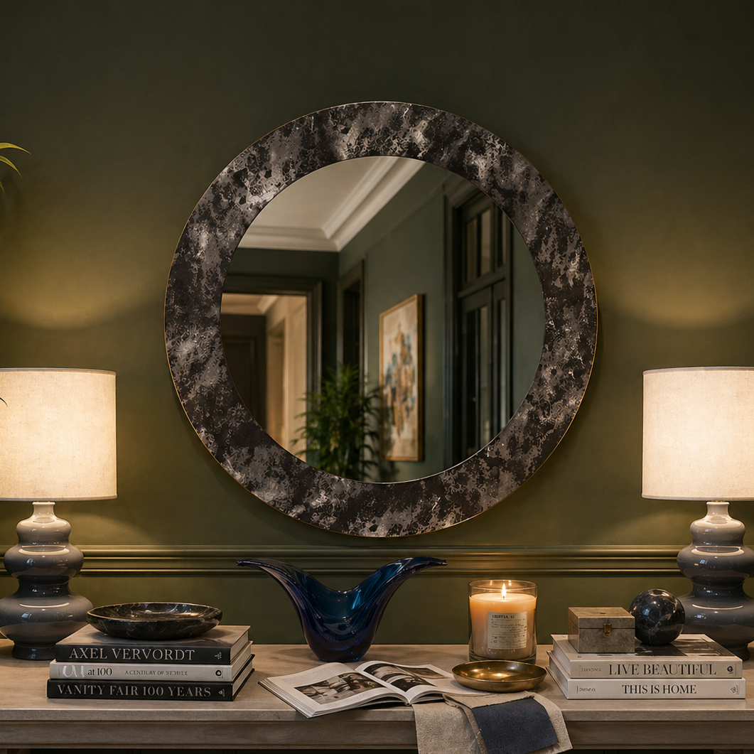 Perfect for living spaces, hallways or above a console, sideboard or mantle, it brings depth and modern elegance to any interior.